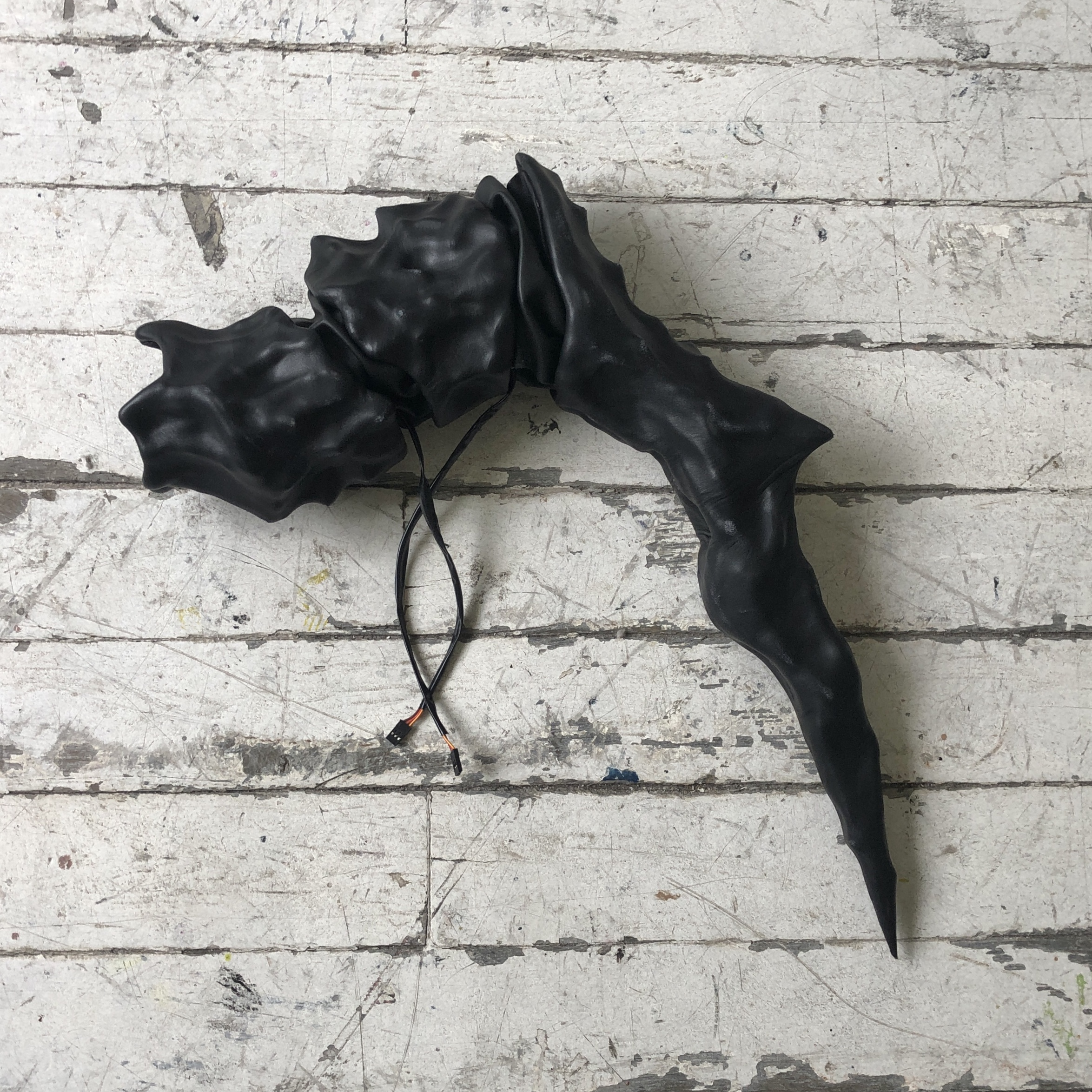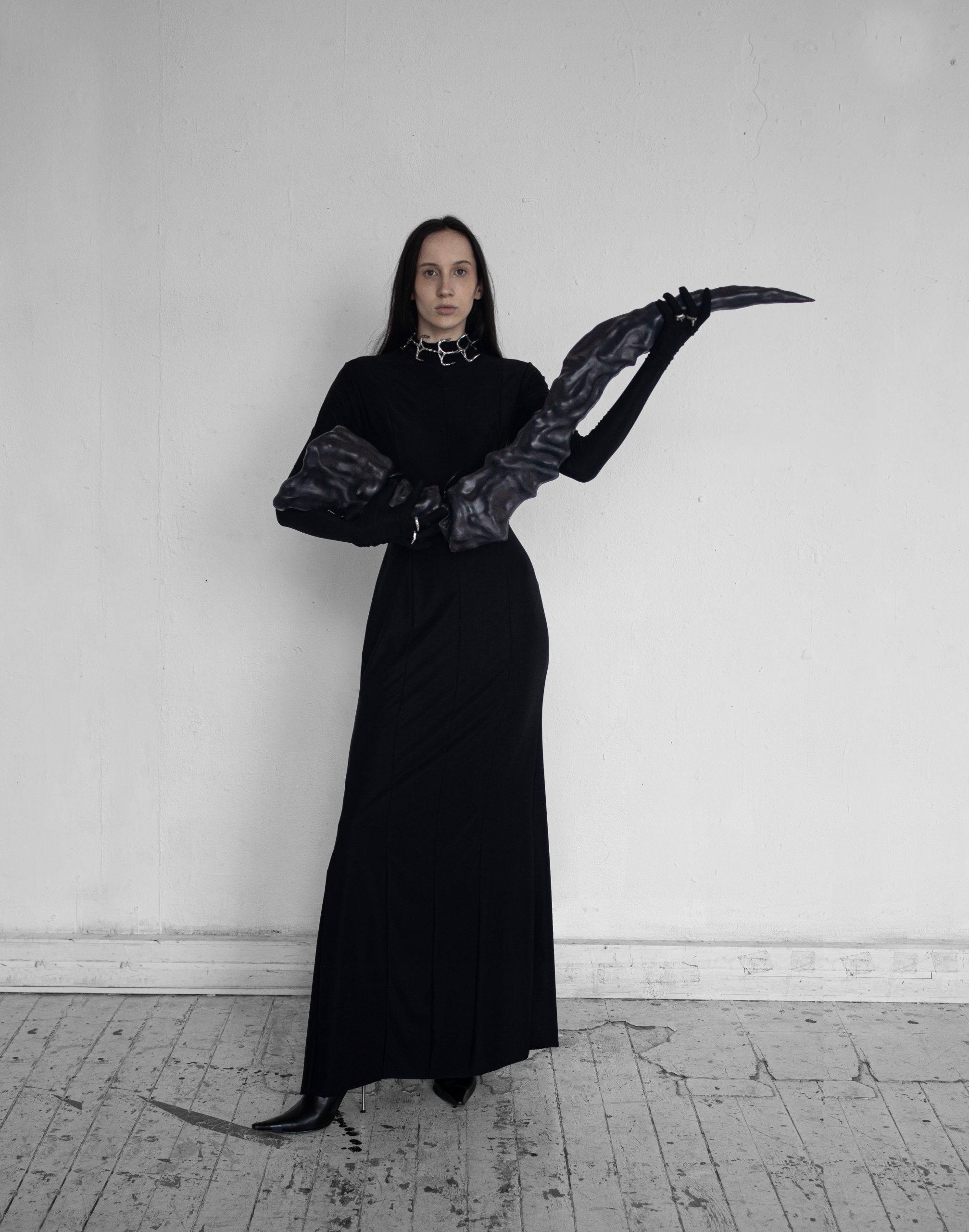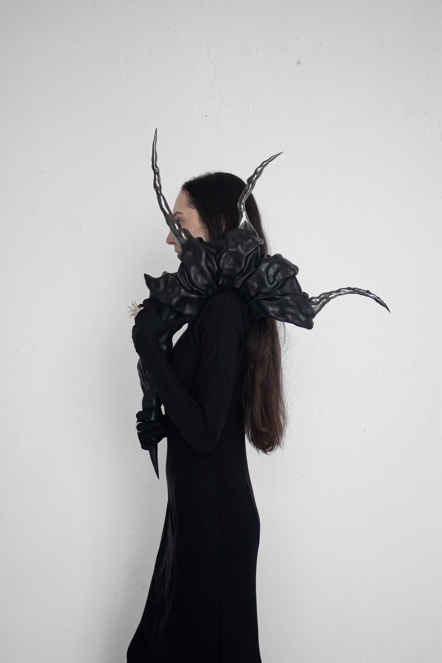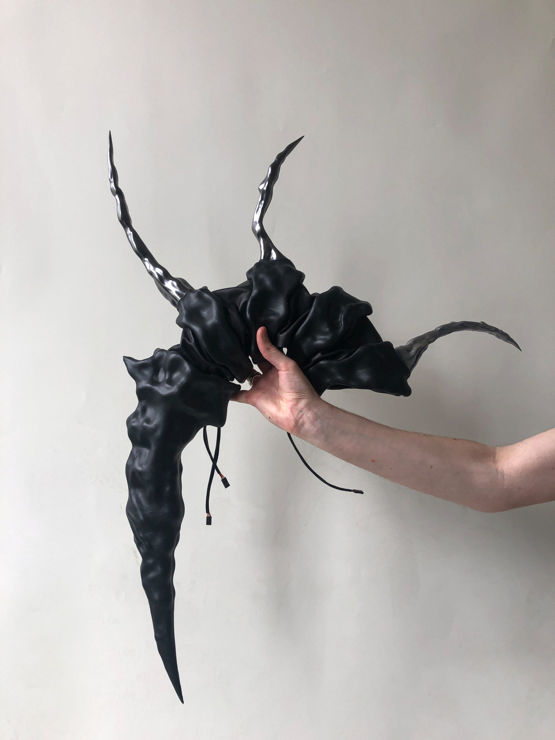 Démembré Série de sculptures robotisées Impression 3D, moteur et cuir Issue de ma collection de master design de mode à l'école Duperre Paris, 2024 Modèle : Bea @_beacasey Photo Luna Engel @luashl and me