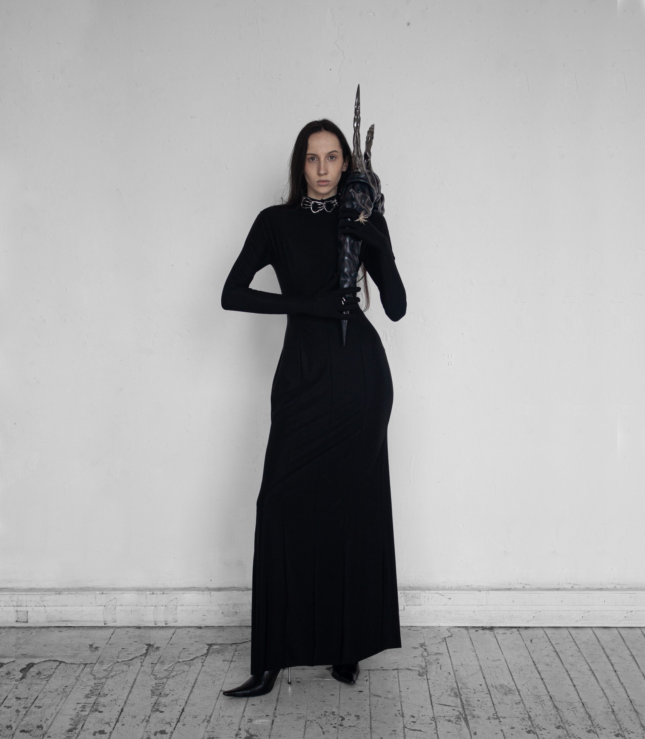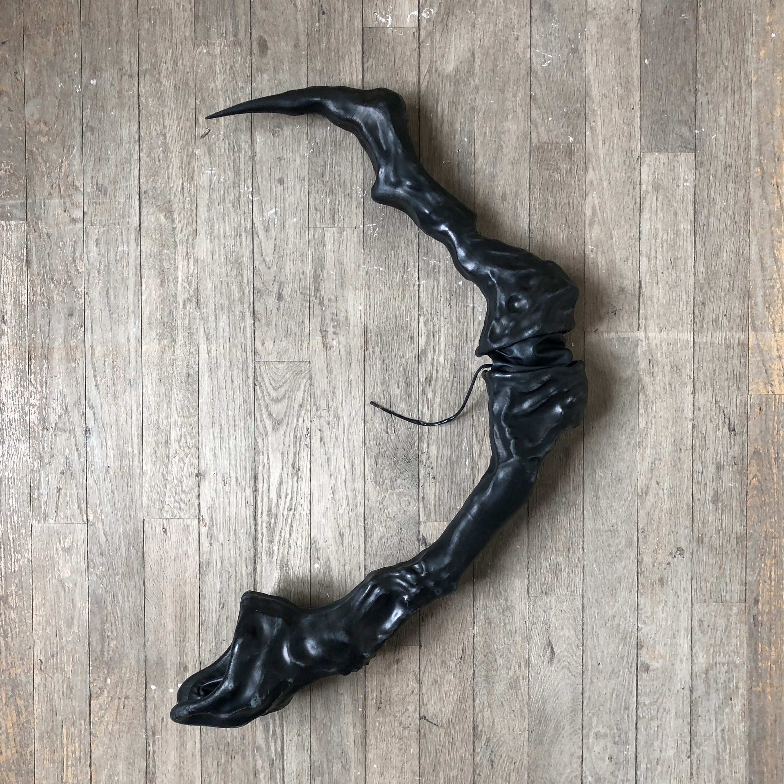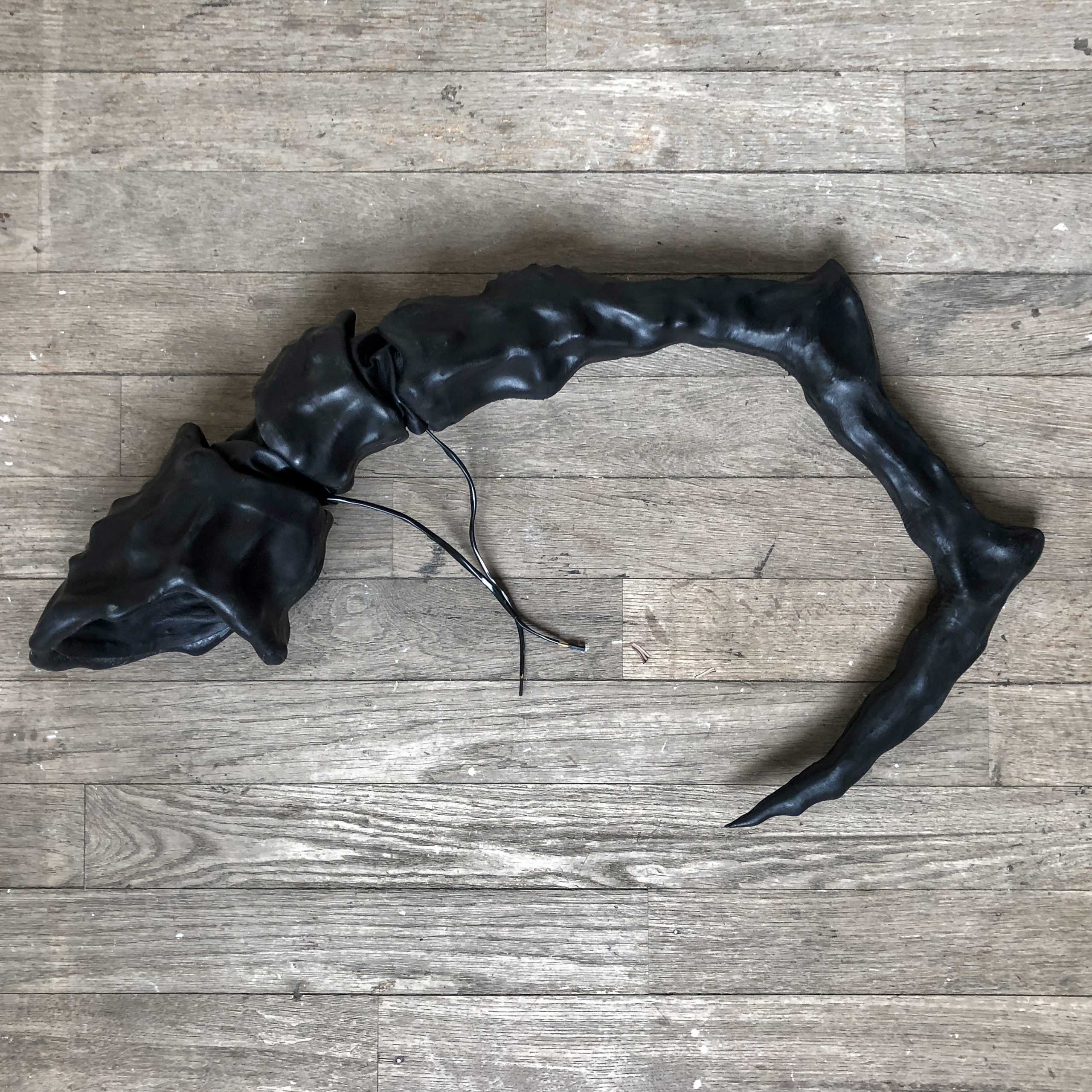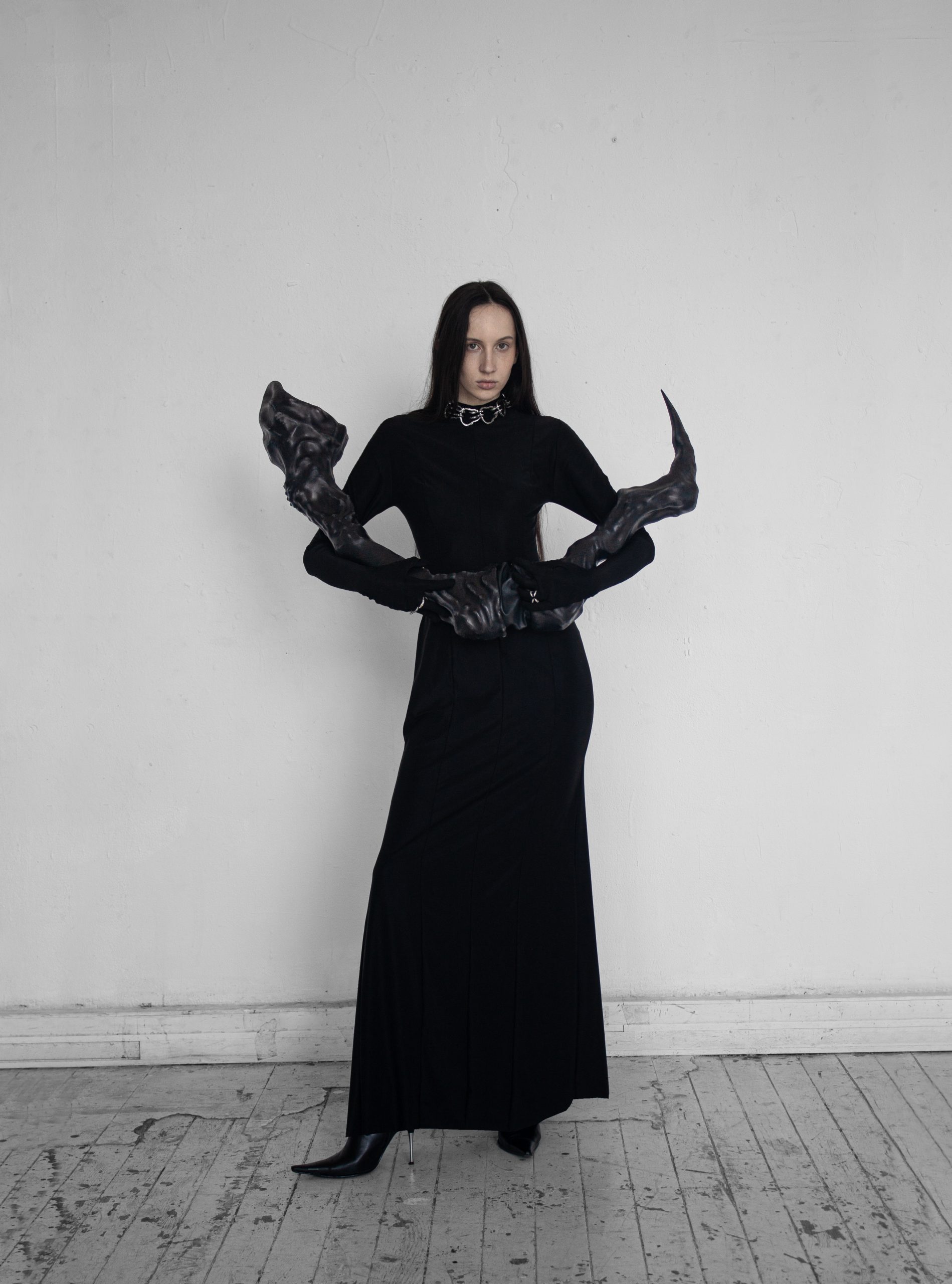 Démembré Série de sculptures robotisées Impression 3D, moteur et cuir Issue de ma collection de master design de mode à l'école Duperre Paris, 2024 Modèle : Bea @_beacasey Photo Luna Engel @luashl and me